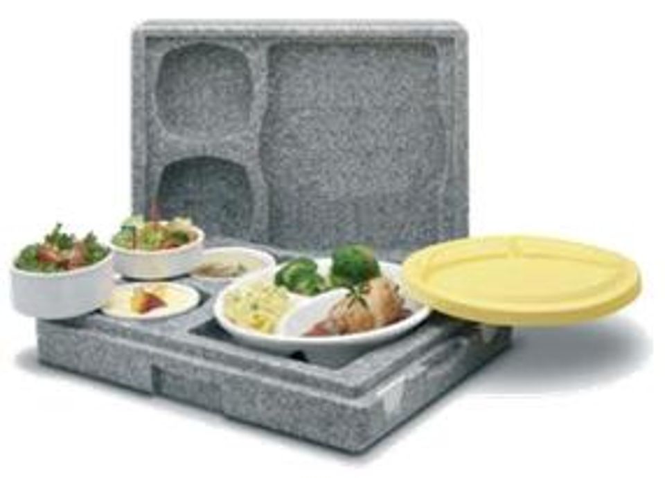 Wir liefern unser warmes, verzehrfertiges Essen auf Porzellangeschirr in isolierten Thermobehältern.
